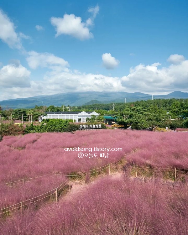 10월, 제주의 가을을 핑크빛으로 물들이는 주인공은 단연 핑크뮬리죠. 휴애리 자연생활공원은 해마다 가장 먼저 핑크뮬리가 피어나는 곳으로, 이맘때쯤이면 초록 들판 위에 분홍빛 물결이 살며시 퍼집니다. 늦더위 속에서도 제일 먼저 색이 올라오는 곳이라 지금 핑뮬 상태 최고입니다.
