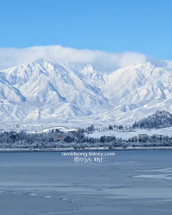추워도 영랑호수윗길을 굳이 가야 하는 이유는 딱 하나인데 겨울이 제일 예쁘게 보이는 물 위 구간이 있어서다. 호수 위로 ‘들어가는’ 풍경이 나온다. 일반 호숫가 산책은 물을 옆에 두고 걷는 느낌인데, 여긴 물 위로 길이 이어져서 시야가 통째로 열린다. 겨울엔 공기가 맑아지는 날이 많아 수면 색이 더 차분해지고, 하늘빛이 그대로 내려앉아 설악 쪽 겨울 실루엣이 가장 잘 잡힌다.