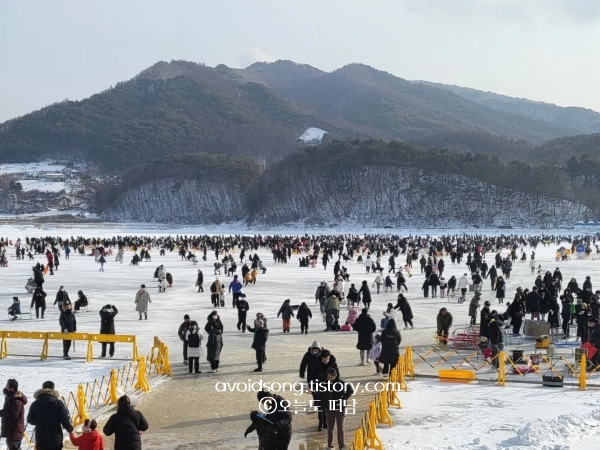 구멍 앞에 앉아 있다가 입질이 오면 손목을 살짝 들어 올리는 그 순간이 핵심이고, 잡은 송어는 바로 회나 구이로 즐길 수 있다. 겨울놀이도 종류가 다양하니까 낚시만 고집하지 않아도 된다. 잠깐 눈썰매나 체험존으로 이동해 몸을 푸는 것도 좋다.