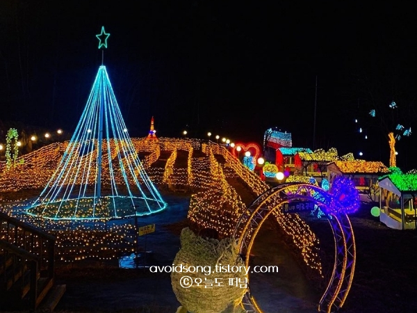 해가 지고 나면 LED 조명이 켜지면서 마을 전체가 환상적인 빛의 공간으로 바뀌는데, 눈 내리는 날에는 그 분위기가 몇 배 더 깊어진다. 포토존이 곳곳에 마련돼 있어 연인, 가족 단위 방문객이 많고, 야간에는 조용한 음악과 함께 걷기만 해도 충분히 특별한 기분을 느낄 수 있다.