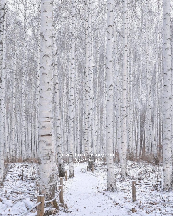 축제장을 둘러본 후, 차량으로 30분 정도 이동하면 만날 수 있는 원대리 자작나무숲은 또 다른 겨울 풍경을 보여준다. 자작나무 사이로 눈이 소복이 쌓인 숲길은 도심과는 완전히 다른 분위기다. 경사는 완만하고 왕복 약 3시간 정도로 여유롭게 산책할 수 있으며, 숲 내부는 소음 없이 고요해 눈을 밟는 발소리마저 특별하게 느껴집니다. 겨울철에는 입산이 오후 4시 전으로 제한되므로 오전 또는 이른 오후 시간대 방문이 적절하며, 눈이 많이 쌓인 날엔 미끄럼 방지를 위한 장비 착용이 권장된다.