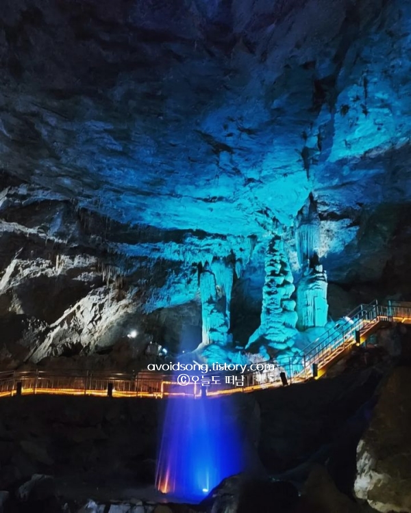 화암동굴은 스노우월드와 결이 정반대다. 밖에서 눈을 맞고 뛰어놀았다면, 여기서는 땅속으로 내려가 조용히 걸으며 겨울을 다른 각도로 만난다. 내부가 예쁘게 정리돼 있어도 오르내림이 꽤 있고, 금속 계단 구간도 많으니 참고하자. 동굴 테마가 다양해서 예쁘고 천연기념물로 지정되어 있다. 추운 날에 동굴이 더 따뜻하다. 걷지 말고 모노레일 타고 동굴 올라가고 내려올 때도 모노레일 타자.