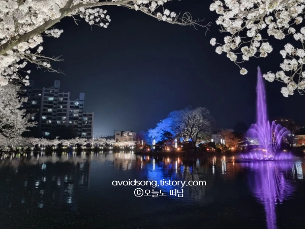 연화지는 경상도 벚꽃 명소로 알려져 있지만, 직접 가보면 기대 이상이라는 생각이 듭니다. 호수 위로 벚꽃이 비치는 모습이 참 예쁘고, 야경이 특히 인상적입니다. 벚꽃 아래에서 돗자리를 펴고 여유롭게 시간을 보내는 이들도 많고 근처 카페에서 차 한잔 마시며 바라보는 연화지의 풍경도 꽤 근사합니다.