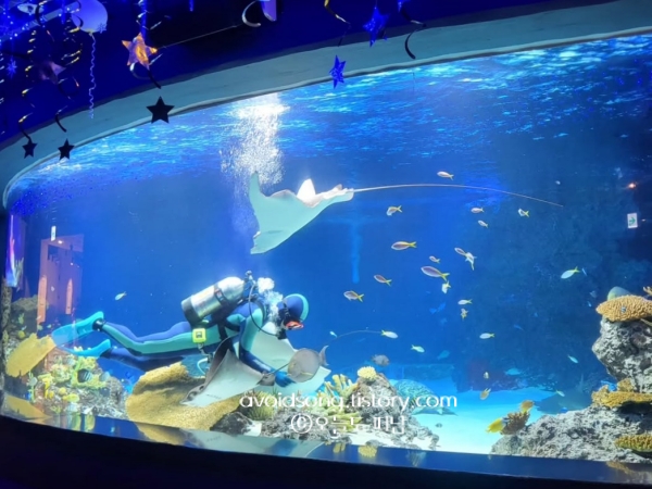 여름에 여기서 한 가지 더 반가웠던 건, 밖이 찜통이라도 실내에서 모든 일정이 해결된다는 점이었어요. 아이들은 수달 먹이주기나 펭귄 생태설명회에 빠져 있었고, 어른들은 인어공주 쇼 보면서 잠시 동화 속으로 들어간 기분도 들었습니다. 투명보트는 추가요금이 있긴 했지만, 수조 위를 직접 떠보는 경험은 꽤 신선했고 광교 호수공원이나 백화점과 연계해서 하루 코스로 잡으면 오감이 가득한 여름이 가능합니다.