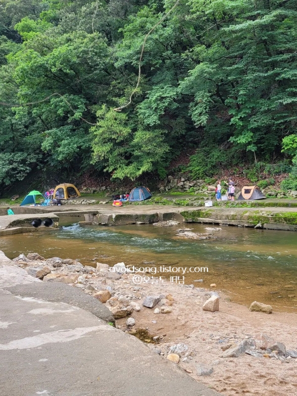‘물놀이+취사+캠핑’이 함께 가능한 가성비 최고의 계곡으로, 하루 종일 여유 있게 보내기 딱 좋습니다. 산과 숲으로 둘러싸여 있는 덕에 한낮에도 그늘이 많아 더위 걱정이 적고, 돗자리나 그늘막만 챙기면 물놀이와 식사, 휴식까지 편하게 해결되기 때문이죠. 물이 깨끗하고 자연 상태가 잘 살아 있어서, 바위 위 가재나 물고기 관찰 같은 작은 생태 체험도 가능했어요. 이렇게 자연 속에서 하루를 풍성하게 채우는 계곡이니, 여름철 서울근교 여행지로 누구에게나 자신 있게 추천할 수 있는 장소랍니다.