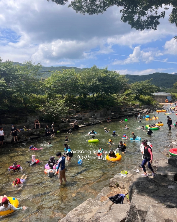 자연 속에 둘러싸인 이 공간은 수영장이 아니라 계곡 그 자체라서, 더운 여름날엔 그보다 더 자연스러운 피서법이 없을 듯합니다. 입장료는 따로 없고, 여름 시즌 동안에는 물놀이장과 물썰매장이 함께 운영되니 시간 맞춰 가는 게 좋아요. 주변에 산책길도 잘 조성돼 있어, 물놀이 후 젖은 발을 말리며 천천히 걸어보는 것도 참 좋았어요. 주차장과 간단한 매점도 갖춰져 있었습니다.