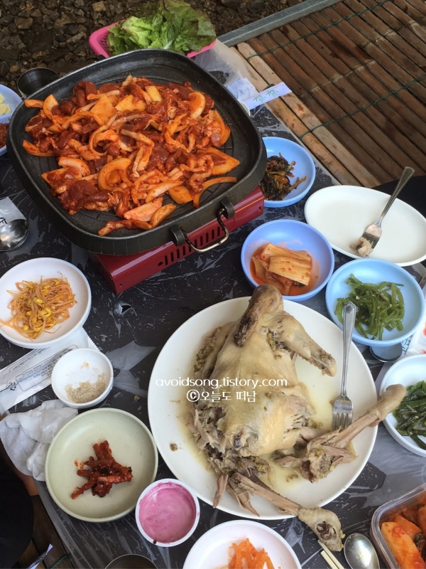 화순 동가리 계곡은 이제야 알게 된 게 억울할 만큼 현지 사람들 사이에선 이미 전라도 물놀이하기 좋은 계곡 손꼽히는 곳이었어요. 물은 얕은 구간부터 어른 무릎을 넘는 깊은 구간까지 다양하게 분포되어 있어서 아이들과 어른 모두가 놀기에 좋았고, 주변 식당에서는 평상을 빌리고 닭백숙이나 닭볶음탕 같은 음식을 바로 먹을 수 있어 무겁게 챙겨오지 않아도 부담이 없었습니다.