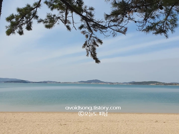 모래가 워낙 곱고 부드러워 맨발로 걸어도 전혀 불편함이 없었고, 썰물 때면 작은 조개들이 모래 위를 바삐 움직이는 모습까지 볼 수 있어 눈도 즐거웠어요. 해변 바로 앞에는 오토캠핑장, 펜션, 편의점, 식당, 배달 가능한 곳까지 두루 있어 하루 종일 머물기에도 불편함이 없었습니다.