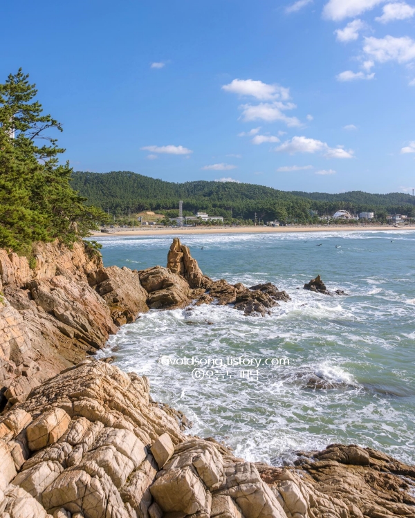 해변 뒤편으로 소나무 숲이 이어져 그늘에서 쉬기 좋고, 캠핑장 시설도 잘 갖춰져 있어 차박족들도 자주 찾는다. 샤워장과 화장실 같은 편의 시설도 깨끗하게 관리되고 있다. 조용하고 한적한 분위기라 가족 단위로 편하게 쉬기 완벽하다.