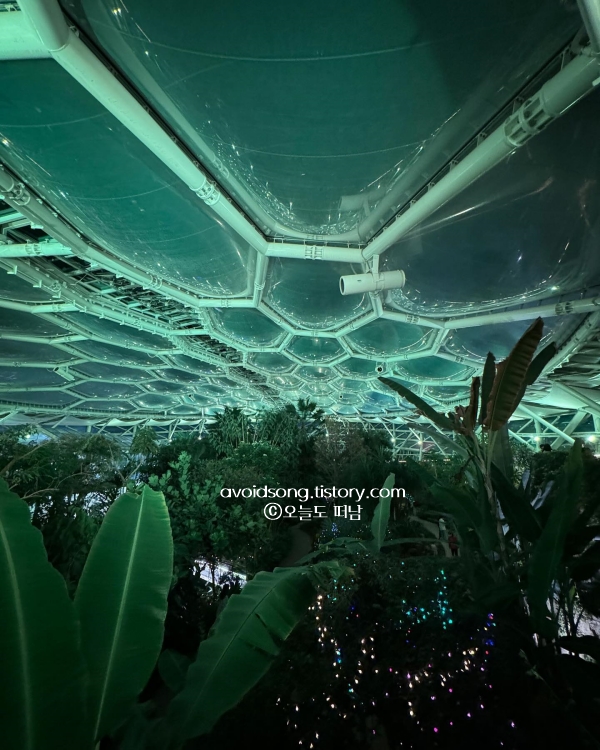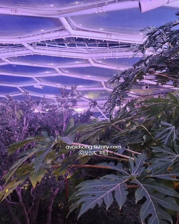 수피아 야간개장은 해가 질 무렵부터 진짜 분위기가 바뀐다. 스카이워크를 따라 걷는 길에는 불빛이 길게 깔리고, 아래쪽으로는 조명이 비친 식물들이 환하게 반짝인다. 입구부터 ‘아바타’ 얘기를 들었는데, 걷다 보니 정말 그 말이 틀리지 않았다. 길이 넓진 않지만 조명이 군데군데 연출되어 있어서 발길이 자주 멈춘다. 6월 국내 가족여행지 추천 아이와 함께 걷기에도 무리는 없었고, 통창 카페에서 잠깐 쉬었다 가기 좋았다. 실내외 연결이 잘 되어 있어서 너무 춥지도 덥지도 않게 머무를 수 있었다.